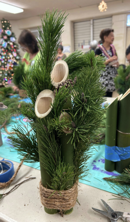 Join Temari Hawaiʻi for a special Kadomatsu making event. After learning about the cultural and historical context of kadomatsu, workshop attendees will tie together three angled-cut bamboo stalks and add shore pine and noshi, a folded paper decoration.
