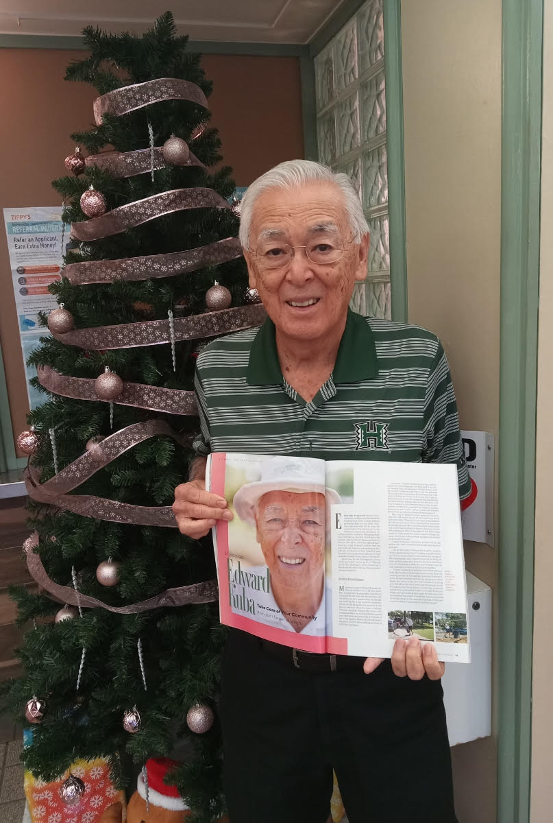 When Honolulu magazine sought inspiring elders in Hawaiʻi whose lives offered wisdom in later years, it selected Edward M. Kuba as one of six individuals to profile. (Another was former Hawaiʻi Governor John Waihee III, who is married to Uchinanchu former First Lady Lynne Kobashigawa Waihee and has known Kuba for decades.) The magazine featured a short video interview with Kuba and devoted two full pages to his profile, highlighting his daily walks around Waikīkī near his home—both for exercise and to pick up trash along the way.